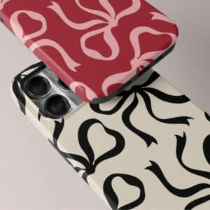 Customized Colors Bows Aesthetics MagSafe Phone Case, Black Cream Pink Red iPhone 16 15 14 13 12 11 X Pro Max Plus Galaxy S24 S23 Ultra Case